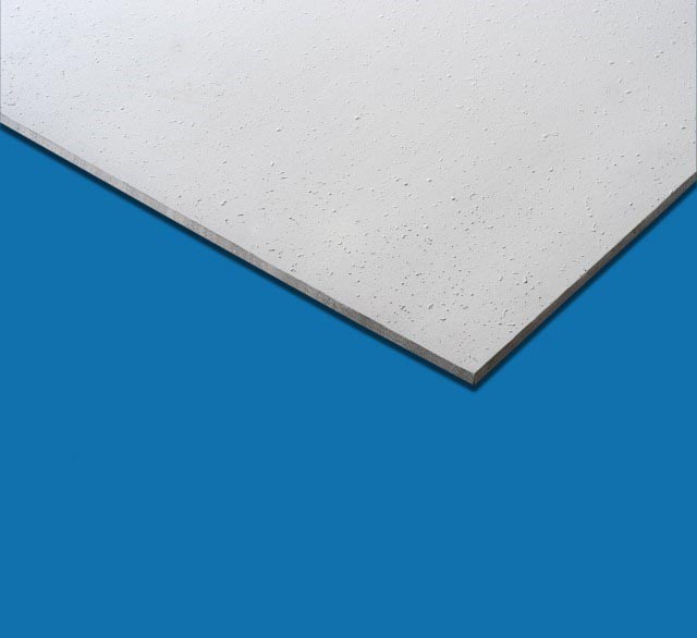Placa de cielorraso desmontable de fibra mineral con buen comportamiento acústico. Durable, lavable, restregable